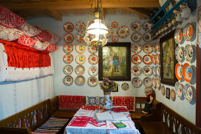 Miután jól bepunnyadt mindenki (ráadásul a kinti hideg után bent kellemes meleg volt), azért csak átnéztünk a kis múzeumba is, ami egy régi tornácos ház berendezve szintén autentikusan, népi stílusban. Itt kialakult egy kisebb forgalmi dugó, ahogy mindenki megrohamozta egyszerre.