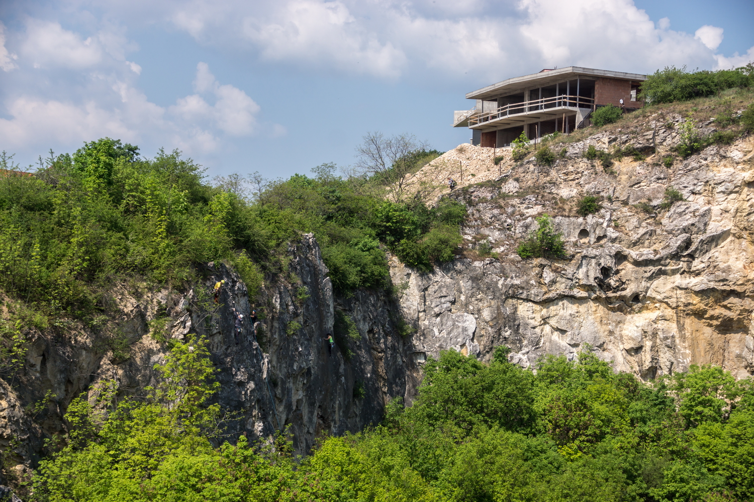 A sziklás hegyoldalon sokan másztak.